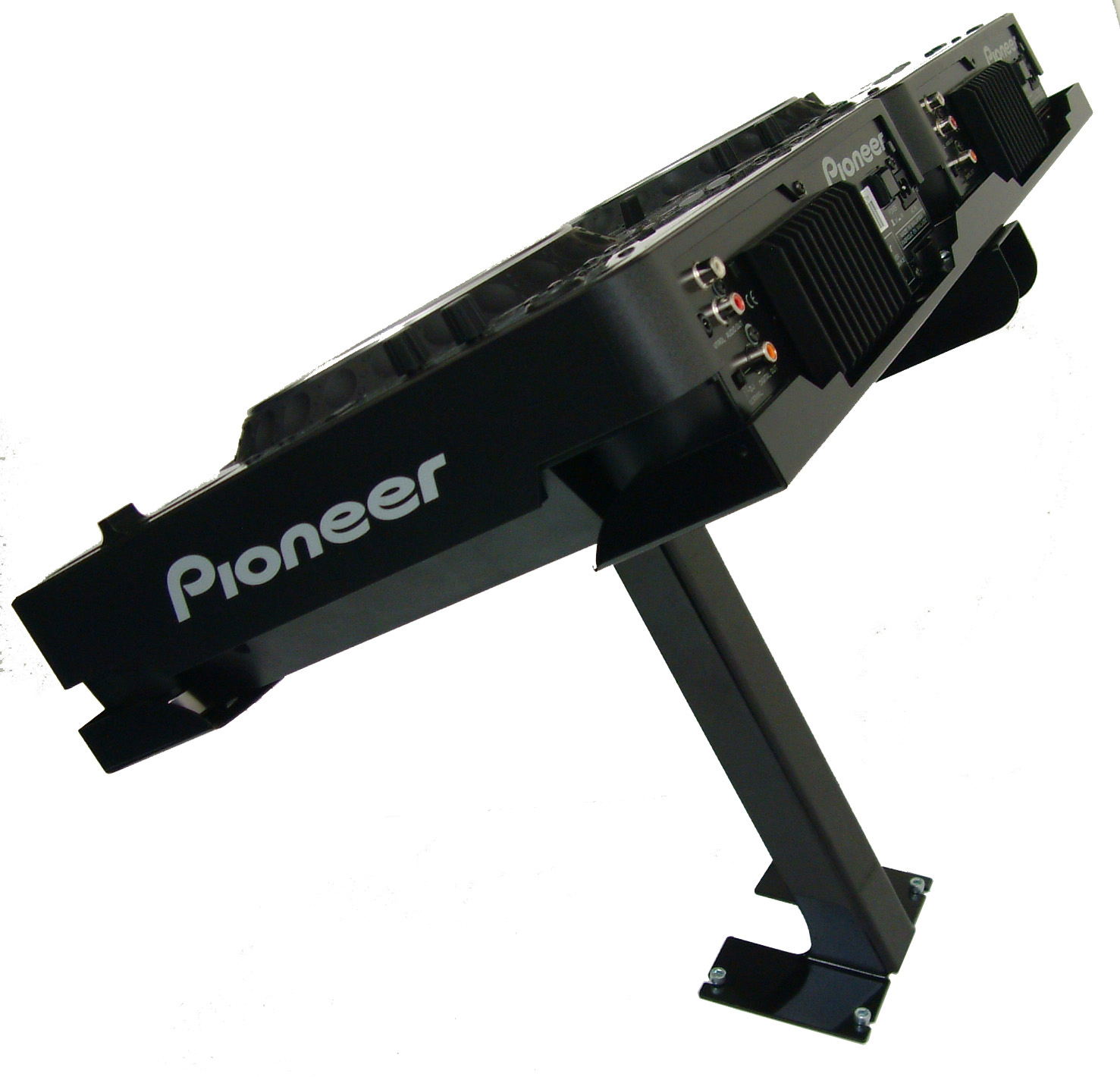 BRACKET'S WITH TILT-ABLE CLAMP AND SECURE BASS PLATE FOR ATTACHMENT TO ANY CONSOLE OR DJ