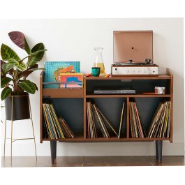 Record collector unit – Designed to complement and fit with the whole Sefour range. The connected design elements like the record storage compartment and curves will attract existing customers. Indeed mix and match with the other storage products to store your whole collection. Avoiding the simple box designs, you can see the side panels have smooth profiles that immediately provide a mid century design feel but in a modern form. This item is a crafted in high quality mdf and metal.